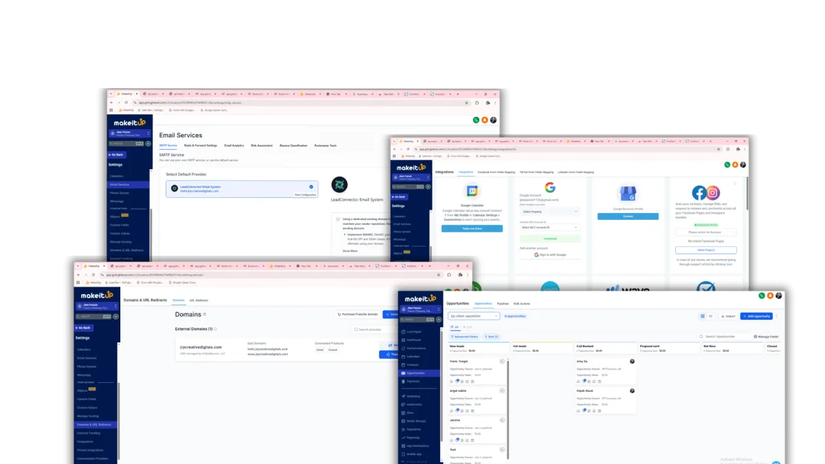 Connect your forms, calendars, funnels, and communication tools inside Go High Level.