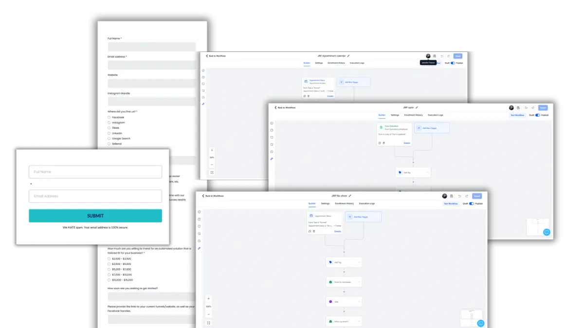 Every page in this funnel is supported by a full automation system inside High Level.